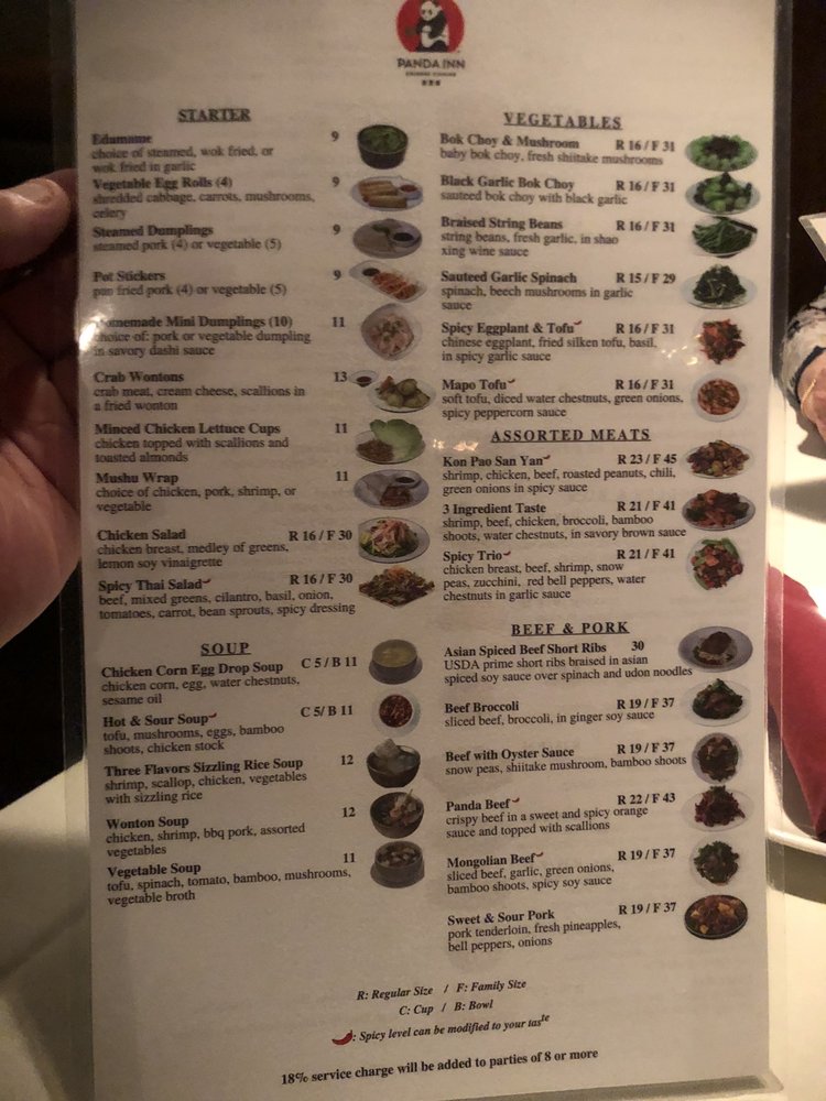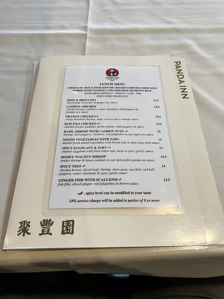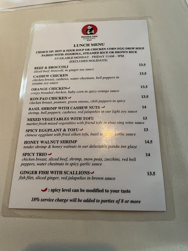 Introducing the menu at Panda Inn, located in La Palma, CA, offers a variety of traditional Chinese dishes with a modern twist. Start off with Mu Shu Wraps or Minced Chicken Lettuce Cups for appetizers, followed by Chinese Chicken Salad or Mango Duck Salad for a refreshing salad option. Dive into a comforting bowl of Vegetable Soup or Assorted Wonton Soup for a satisfying meal. Customers rave about the authentic flavors and generous portions at Panda Inn, making it a favorite spot for Chinese cuisine enthusiasts. With a welcoming atmosphere and friendly service, Panda Inn is perfect for families, groups, and special occasions. Don't miss out on their signature dishes like Honey Walnut Shrimp and Mongolian Beef. Experience the taste of quality ingredients and excellent service at Panda Inn.
